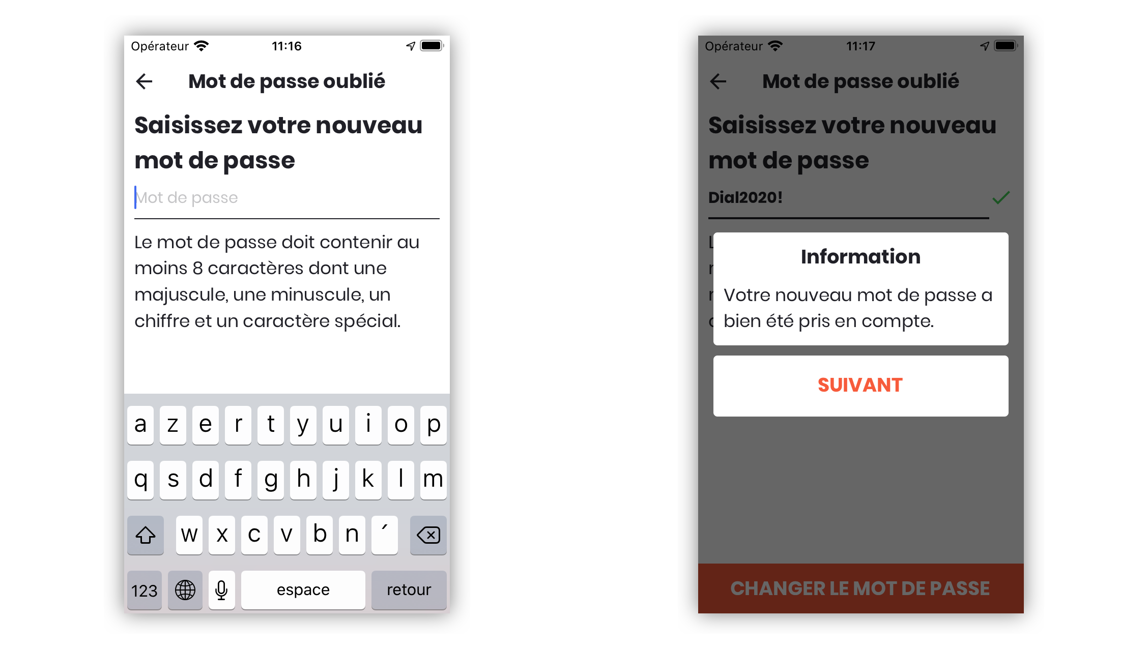 Votre mot de passe a bien été modifié, vous pouvez l’utiliser pour vous connecter à votre application Dial.